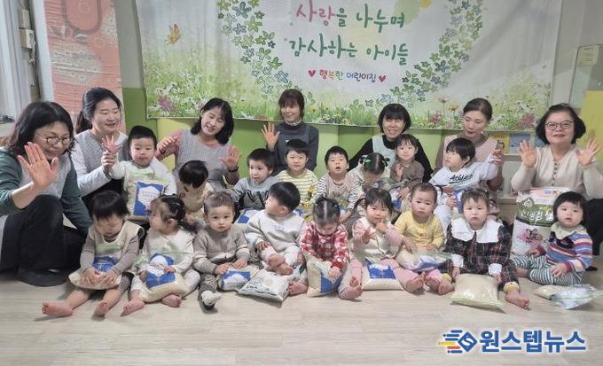 이번 나눔은 설 명절을 앞두고 행복한어린이집 원아와 학부모, 교직원들이 이웃을 사랑하는 마음을 모아 마련됐으며, 쌀 43㎏을 전달하며 지역사회에 훈훈한 온기를 더했다.