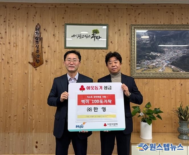 윤성보 ㈜한영 대표는 “설날을 맞아 지역 이웃을 돕기 위해 올해도 기부에 동참하게 됐다”라며 “앞으로도 지역의 취약계층에 도움이 되는 다양한 사회 공헌 활동을 이어가겠다”라고 말했다.
