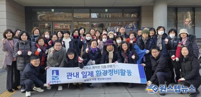 원스텝뉴스 이병희 기자 | 수원시 팔달구 지동에서는 지난 3일, 다가오는 설 명절을 맞이해 통장협의회 30여 명과 동 직원들이 참여하여 설맞이 일제 대청소를 실시했다.