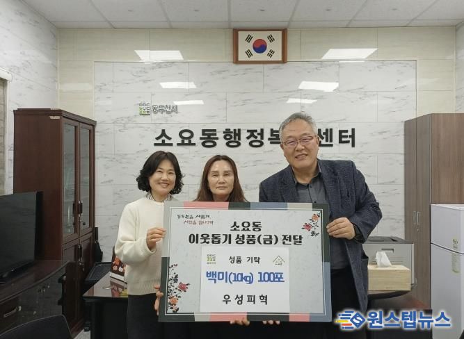 김승호 소요동장은 “어려운 이웃을 위해 한결같이 따뜻한 나눔을 실천해 주신 우성피혁 정소현 대표님께 깊이 감사드린다”라고 말했다.