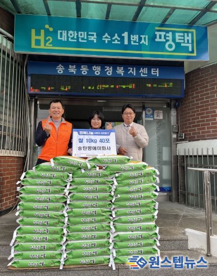 원스텝뉴스 이병희 기자 | (합자)송탄평애미화사는 4일 설 명절을 맞아 지역 내 취약계층을 지원하기 위해 쌀 10㎏ 40포를 평택시 송북동 행정복지센터와 지역사회보장협의체에 기부했다.