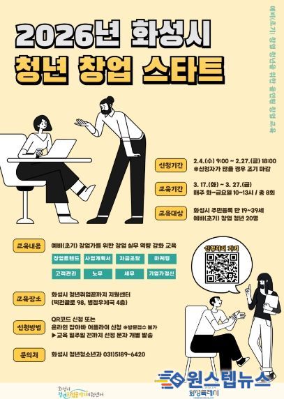 원스텝뉴스 이병희 기자 | 화성특례시는 청년 예비 창업자와 초기 창업자를 대상으로 실무 중심의‘2026년 청년 창업 스타트 교육’을 오는 3월 운영한다.
