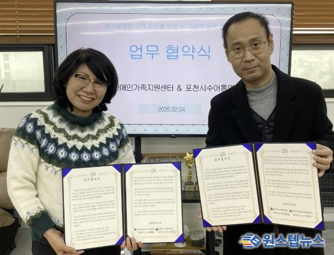 원스텝뉴스 이병희 기자 | 포천시장애인가족지원센터는 지난 4일 포천시수어통역센터와 농인(청각장애인) 가족의 복지 증진과 서비스 접근성 강화를 위한 업무협약(MOU)을 체결했다.
