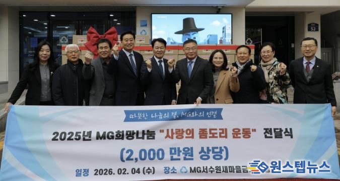 유정현 서수원 새마을금고 이사장은 “함께 모은 정성이 어려운 이웃들에게 따뜻한 힘이 되길 바란다”며 “앞으로도 지역사회와 함께하는 나눔 활동을 지속적으로 이어가겠다”고 전했다.