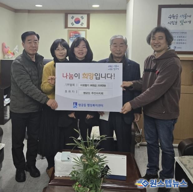 원스텝뉴스 이병희 기자 | 지난 4일 수원시 팔달구 행궁동 주민자치회는 지역 내 취약계층을 돕기 위해 후원금 200만원을 행궁동 행정복지센터에 기부했다.
