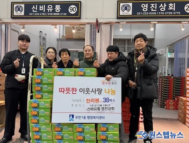 원스텝뉴스 이병희 기자 | 수원 농수산물도매시장 내 신비유통‧영진상회에서 설 명절을 앞두고 우만동 이웃들에게 따뜻한 정을 전했다고 밝혔다.
