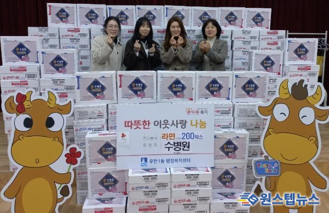 원스텝뉴스 이병희 기자 | 수병원은 지난 4일, 설 명절을 맞아 어려운 이웃들을 위해 라면 200박스를 우만1동 행정복지센터에 기부하며 이웃사랑을 실천했다.