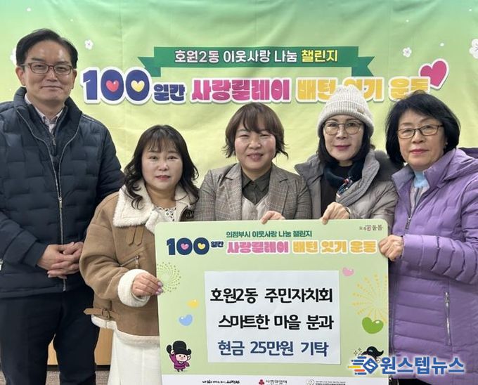 원스텝뉴스 이병희 기자 | 의정부시 호원2동주민센터는 지난해 12월부터 올해 2월까지 호원2동 주민자치회 회장 김규오, 부회장 이영배를 비롯한 아름다운 마을·스마트한 마을·살기 좋은 마을 분과가 지역 내 어려운 이웃을 돕기 위해 성금 50만 원, 쌀 50kg, 컵라면 10상자, 쌀국수 200인분, 사과즙 30박스를 기탁했다고 밝혔다.