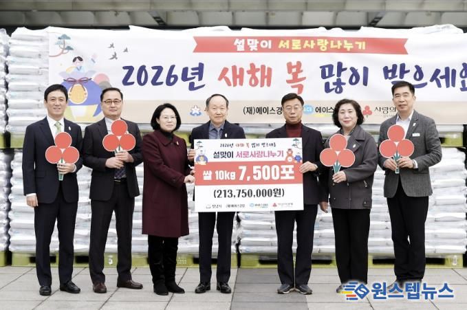 재단법인 에이스경암은 2월 5일 성남시에 2억1375만원 상당의 쌀 7500포대(10㎏ 들이)를 기탁했다.