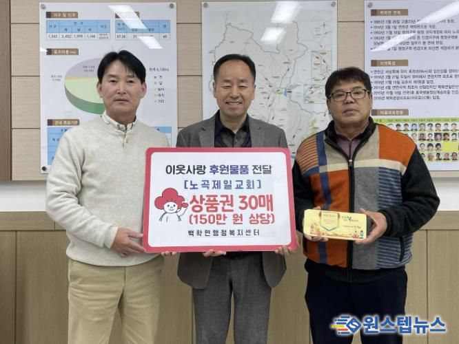 윤석문 백학면장은 “어려운 이웃을 위해 한결같은 나눔에 앞장서는 노곡제일교회에 감사드린다”며 “도움이 필요한 이웃들에게 소중히 전달하겠다”고 밝혔다.