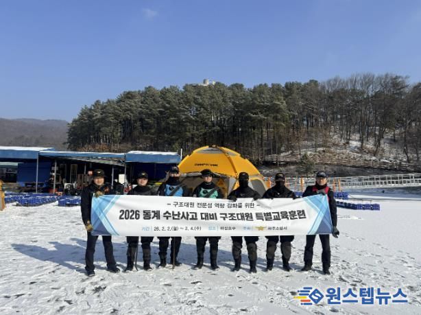 원스텝뉴스 이병희 기자 | 파주소방서는 2월 2일부터 4일까지 3일간 마장호수 일원에서 겨울철 수난사고에 대비한 ‘동계 수난구조 특별교육훈련’을 실시했다. 이번 훈련은 혹한기 수난 현장의 특수성과 위험성을 고려해 구조대원의 신속한 대응과 구조 전문성 강화를 목표로 진행됐다.