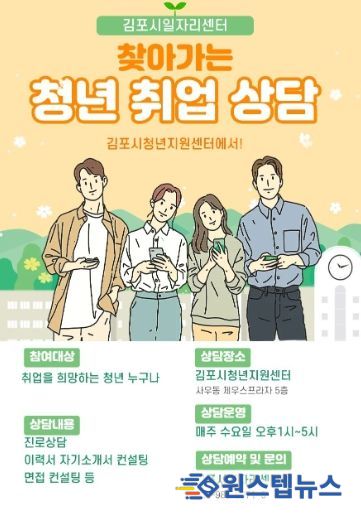 원스텝뉴스 이병희 기자 | 김포시가 김포시청년지원센터에 김포시일자리센터 직업상담사를 파견해 청년들의 취업 고민 해소에 더욱 적극적으로 나선다.