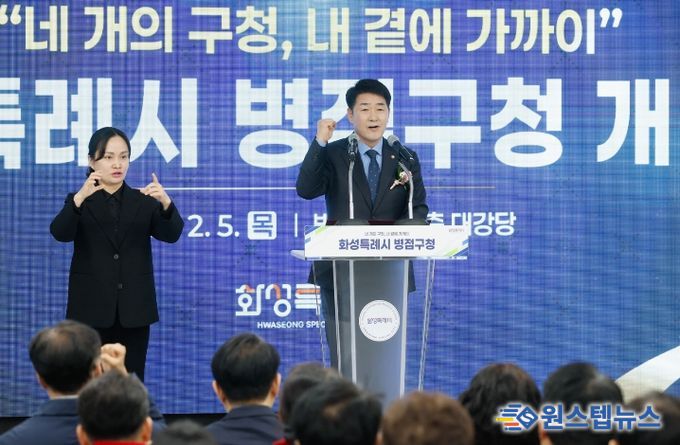 배정수 의장은 “오늘 우리는 새로운 혁신의 문을 열었다. 병점구 개청은 시민 중심 행정이 다시 움트기 시작하는 순간”이라며 “병점은 오랜 세월 화성의 삶과 문화가 집약된 공간이었고, 그 중심에 오늘 시민을 향한 새로운 행정의 심장이 뛰기 시작했다”고 말했다.
