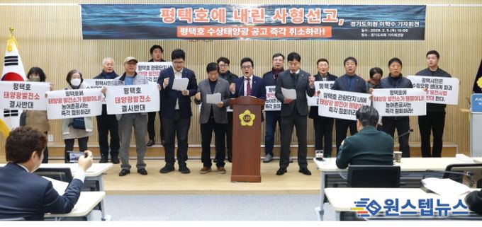 이날 이학수 의원은 △평택호 수상태양광 사업 공고의 즉각 취소 △밀실 면담 경과의 전면 공개와 평택시의 명확한 반대 입장 표명 △평택호 관광 활성화와 인프라 구축을 위한 범정부 대책 수립 △대규모 에너지 사업 추진 시 지자체 동의와 주민 공론화를 의무화하는 법령 개정을 촉구했다.