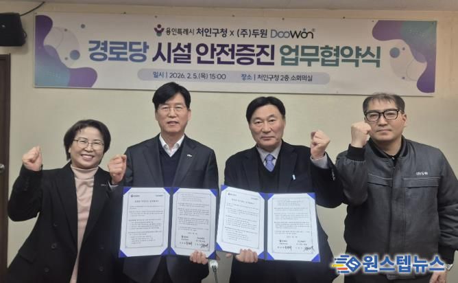 원스텝뉴스 이병희 기자 | 용인특례시 처인구는 5일 처인구청 2층 소회의실에서 지역내 전기부품 생산 전문기업 ㈜두원과 ‘경로당 시설 안전증진 업무협약’을 체결했다.