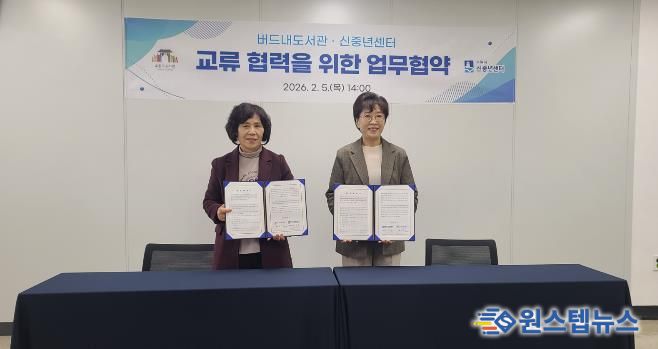 두 기관은 5일 버드내도서관에서 ‘신중년 맞춤형 라이프 솔루션 제공을 위한 업무협약’을 체결하고, 협력을 약속했다.