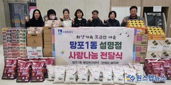 원스텝뉴스 이병희 기자 | 수원시 영통구 망포1동은 지난 5일, 주민자치회·통장협의회·지역사회보장협의체·바르게살기운동위원회 등 4개 단체장협의회장이 참석한 가운데 관내 어려운 이웃을 지원하기 위한 설 명절 이웃사랑 나눔 전달식을 개최했다.