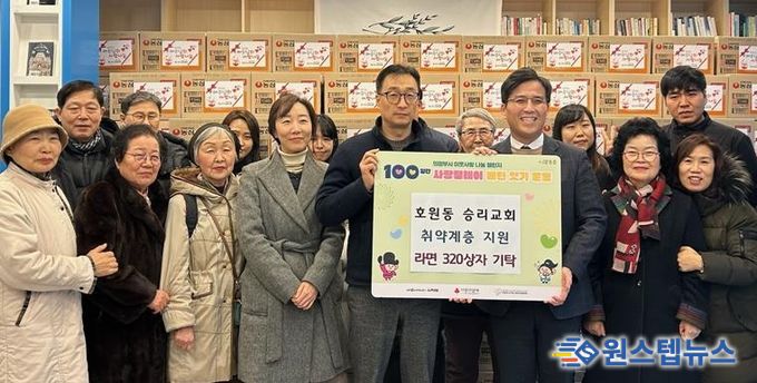 정화자 동장은 “매년 나눔을 실천해 주시는 승리교회에 깊은 감사를 드린다”며 “기탁해 주신 라면은 도움이 필요한 이웃들에게 정성껏 전달해 따뜻한 설 명절을 보낼 수 있도록 하겠다”고 말했다.