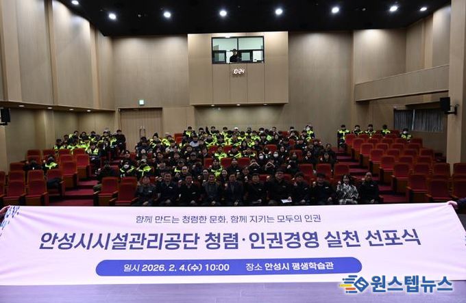 원스텝뉴스 이병희 기자 | 안성시시설관리공단은 2026년을 맞아 지난 2월 4일 안성시평생학습관에서 청렴·인권경영 실천 선포식을 개최했다고 밝혔다.