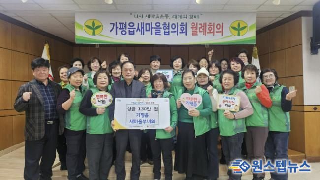 원스텝뉴스 이병희 기자 | 가평군 가평읍새마을부녀회는 최근 가평읍 행정복지센터를 방문해 이웃돕기 성금 130만 원을 기탁했다.