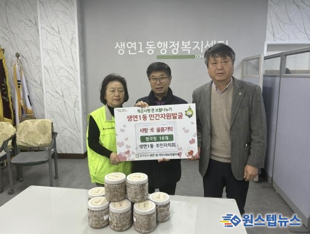 원스텝뉴스 이병희 기자 | 동두천시 생연1동 행정복지센터는 지난 5일, 생연1동 주민자치회가 직접 만든 ‘사랑 愛 청국장’을 관내 경로당 어르신들에게 전달했다고 밝혔다.