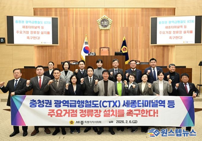 원스텝뉴스 이병희 기자 | 세종특별자치시의회는 6일, 제103회 임시회 제2차 본회의에서 국가균형발전의 상징이자 실질적인 행정수도로 도약하기 위한 ‘충청권 광역급행철도(CTX) 주요 거점 정류장 설치 촉구 결의안’을 채택했다.