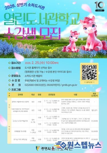 원스텝뉴스 이병희 기자 | 광명시 소하도서관이 ‘2026년 상반기 열린도서관학교’ 수강생을 모집한다.