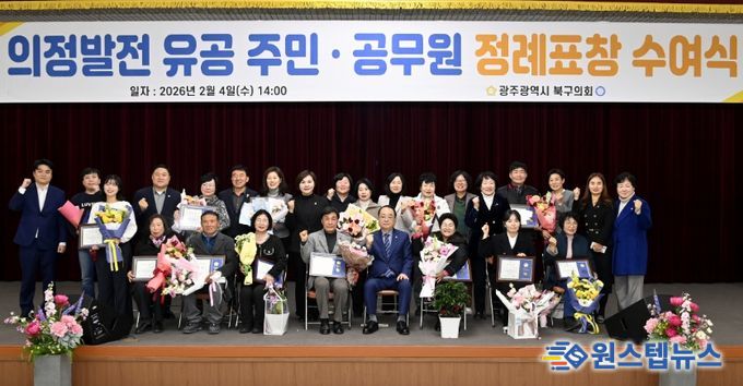 원스텝뉴스 이병희 기자 | 광주 북구의회는 지난 4일, 지역사회 발전에 헌신한 유공자들의 공로를 기리기 위해 2026년도 새해 첫 정례표창 수여식을 개최했다.