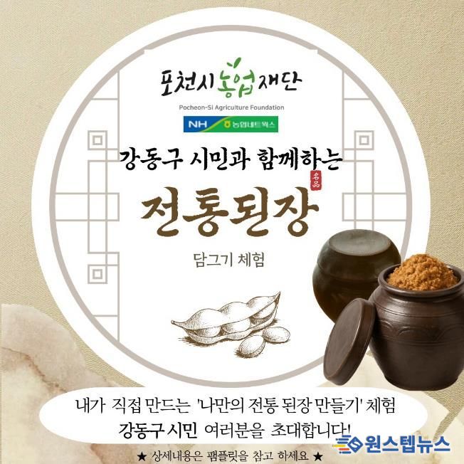 원스텝뉴스 이병희 기자 | 포천시농업재단은 관내 체험 농가와 도시민 간 교류 활성화를 위해 2026년 농촌융복합 교류 체험 지원 사업의 하나로 ‘된장 담그기 농촌체험 패키지’를 마련하고, 오는 27일까지 체험 농가당 30명씩 체험 대상자를 선착순으로 모집한다.