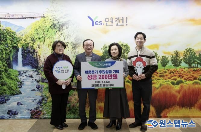 연천군 관계자는 “설 명절을 맞아 지역사회를 위해 따뜻한 나눔을 실천해 주신 파인트리골든케어 김수림 대표님과 김유찬 시설장님께 깊이 감사드린다”며 “기탁해 주신 성금은 어려운 이웃들이 따뜻한 설 명절을 보내는 데 큰 힘이 될 것으로 기대한다”고 말했다.