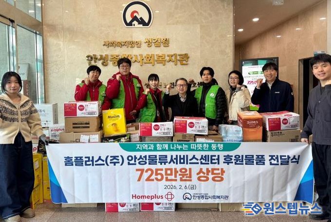 원스텝뉴스 이병희 기자 | 안성종합사회복지관은 지난 6일 홈플러스㈜ 안성물류서비스센터로부터 설 명절을 맞아 생활용품, 가전제품, 즉석밥, 음료 등 총 725만 원 상당의 후원물품을 전달받았다고 밝혔다.