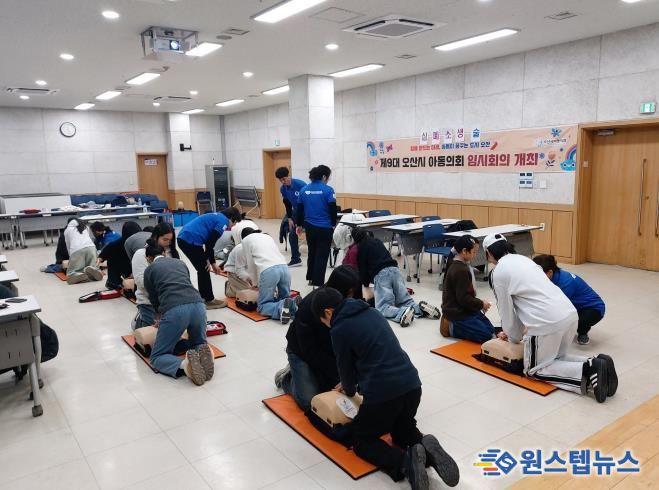 이번 제6차 임시회의는 ‘안전한 세상을 만드는 첫걸음, 심폐소생술’을 주제로 진행됐으며, 아동의회 의원들이 생명의 소중함을 이해하고 응급상황 대처 능력을 기를 수 있도록 마련됐다. 이날 회의에서는 오산시자원봉사센터 전문봉사단이 심폐소생술과 응급 대응에 대한 이론 교육을 실시했으며, 이어 의원들이 직접 심폐소생술과 자동심장충격기(AED) 사용법을 실습하는 체험 교육도 함께 진행됐다.