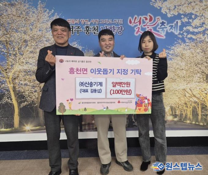 원스텝뉴스 이병희 기자 | (주)신송기계는 설 명절을 앞두고 지역 내 어려운 이웃들이 따뜻한 명절을 보낼 수 있도록 이웃돕기 성금 100만 원을 흥천면행정복지센터에 기탁했다.
