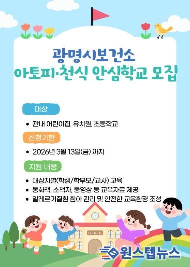 원스텝뉴스 이병희 기자 | 광명시 보건소가 오는 3월 13일까지 ‘아토피·천식 안심학교’ 참여기관을 모집한다.