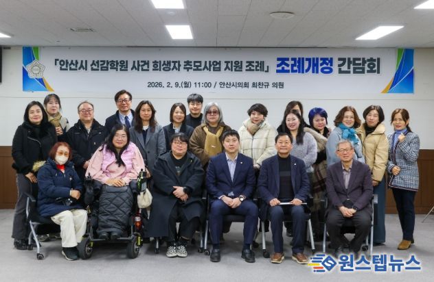 원스텝뉴스 이병희 기자 | 안산시의회 최찬규 의원은 2월 9일 안산시의회 3층 대회의실에서 ‘안산시 선감학원 사건 희생자 추모사업 지원 조례’ 일부개정을 위한 간담회를 개최했다.