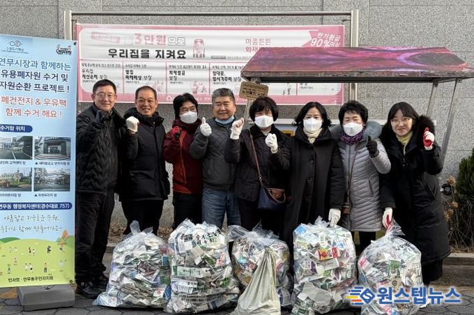 원스텝뉴스 이병희 기자 | 수원시 장안구 연무동은 지난 6일, 반사모(반딧불이 연무시장 사랑 소모임)와 함께 연무시장 일원에서 유용생활폐자원을 수거했다.