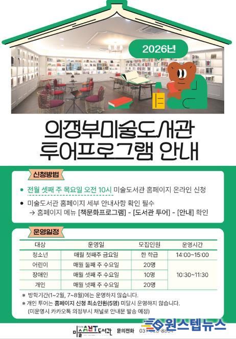 원스텝뉴스 이병희 기자 | 의정부시는 미술 특화 도서관으로서의 가치와 정체성을 시민과 공유하고 소통하기 위해 의정부미술도서관 투어 프로그램을 운영한다.