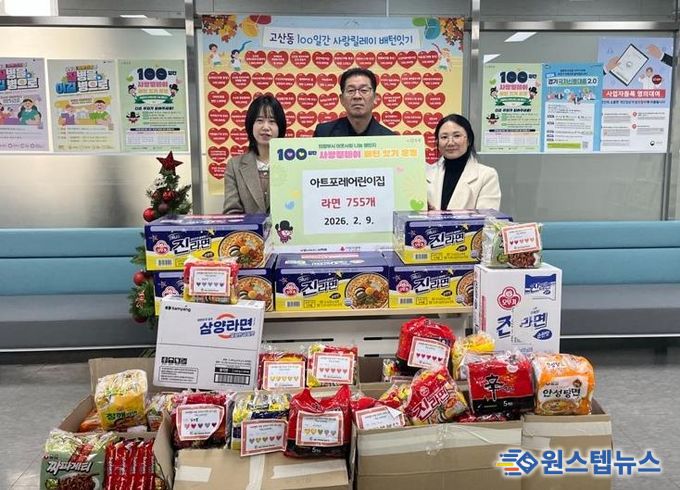 원스텝뉴스 이병희 기자 | 의정부시 고산동주민센터는 2월 9일 아트포레어린이집이 설 명절을 앞두고 소외된 이웃을 위해 라면 755개를 기탁했다고 밝혔다.