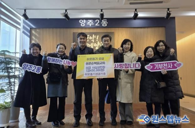 원스텝뉴스 이병희 기자 | 양주시 양주2동 행정복지센터는 지난 9일, 고읍동에 소재한 동문순복음교회에서 설을 맞아 어려운 이웃을 돕기 위해 성금 43만 원을 기부했다고 밝혔다.