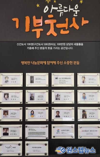 원스텝뉴스 이병희 기자 | 부천시는 기증자에 대한 감사의 뜻을 전하고 기부 문화를 확산하기 위해 상동도서관 1층 로비에 설치된 ‘아름다운 기부천사’ 게시판에 신규 기증기관 2곳인 ㈜웅진과 부천서점(업)협의회를 등재했다고 10일 밝혔다.