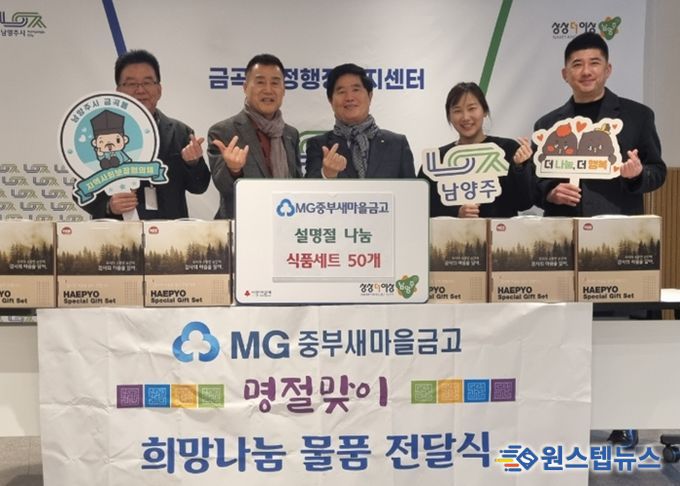 원스텝뉴스 이병희 기자 | 남양주시는 지난 9일 MG중부새마을금고가 지역 내 취약계층이 따뜻한 설 명절을 보낼 수 있도록 식품 선물 세트 50개를 금곡동 지역사회보장협의체에 기탁했다고 10일 밝혔다.