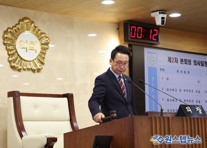 강정구 의장은“이번 임시회 기간 동안 주요 업무보고 청취와 조례안 등 안건 심사를 위하여 노고를 아끼지 않으신 의원 여러분과 공직자 여러분께 감사의 말씀을 드린다”라며, “다가오는 설 명절을 맞아 가정마다 건강과 행복이 가득한 따뜻한 시간이 되시길 진심으로 기원한다”라고 말하며 제260회 임시회 제2차 본회의 산회를 선포했다.