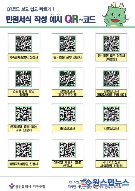 원스텝뉴스 이병희 기자 | 용인특례시 기흥구는 시민들이 각종 민원 서식을 작성하는 데 도움을 받을 수 있도록 QR코드를 활용한 민원 서식 작성 예시를 제공한다고 11일 밝혔다.