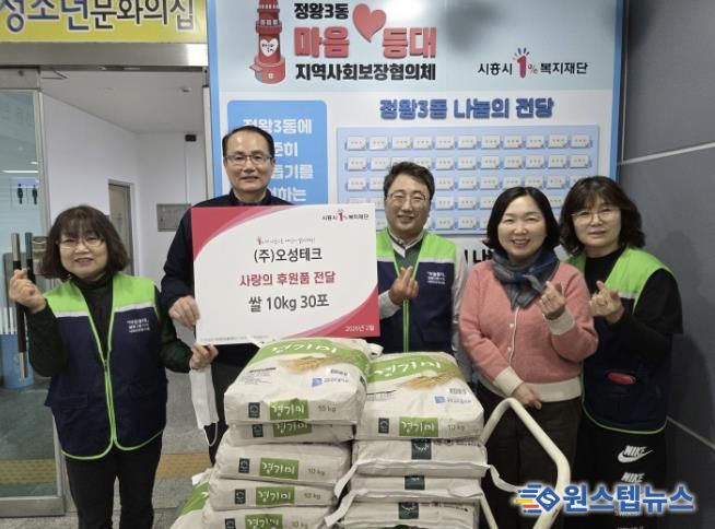 정왕3동 저소득층 주민을 위해 꾸준한 나눔을 실천해 온 ㈜오성테크는 매년 설과 추석 등 명절마다 쌀을 후원하며 지역사회에 온정을 전하고 있다.