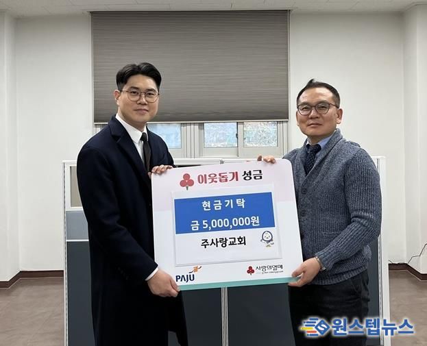 원스텝뉴스 이병희 기자 | 설 명절을 앞둔 지난 10일, 금촌2동에 위치한 주사랑교회가 지역 내 취약계층을 위한 성금 500만 원을 금촌2동에 전달했다.