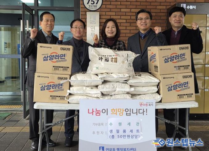 원스텝뉴스 이병희 기자 | 수원시 장안구 연무동 행정복지센터는 11일, 민족 고유의 명절 설을 앞두고 수원세관과 한국관세사회 수원지부로부터 지역 내 어려운 이웃을 위한 따뜻한 후원의 손길이 이어졌다고 밝혔다.