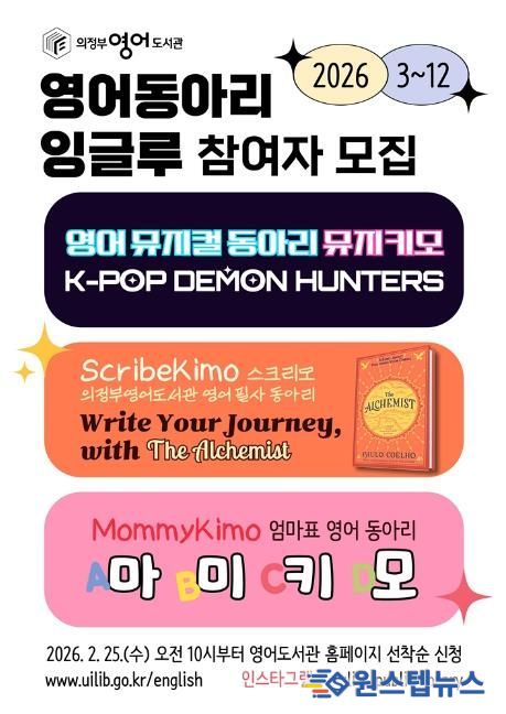 원스텝뉴스 이병희 기자 | 의정부영어도서관은 3월부터 12월까지 영어 뮤지컬, 영어 원서 필사, 엄마표 영어 등 다양한 활동으로 구성된 영어 동아리 ‘잉글루(Englu)’를 운영해 시민의 영어 역량 강화와 영어학습 공동체 활성화를 추진한다.