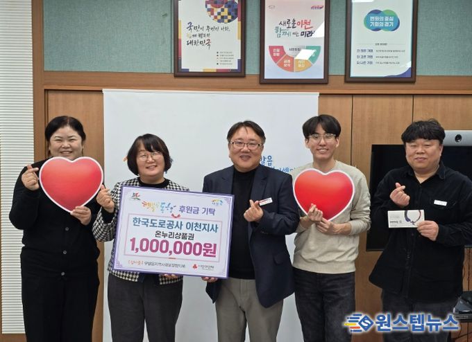 원스텝뉴스 이병희 기자 | 한국도로공사 이천지사가 설 명절을 앞두고 부발읍 행정복지센터를 찾아 온누리상품권 100만원을 전달하며 설을 앞둔 행정복지센터에 이웃을 향한 온정이 더해졌다.