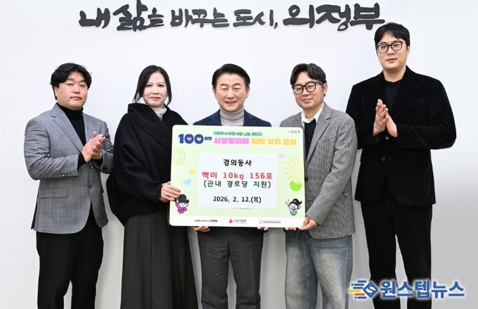 원스텝뉴스 이병희 기자 | 의정부시는 2월 12일 지역 봉사와 나눔을 목적으로 결성된 민간 봉사단체 경의동사가 관내 경로당에 백미(10kg 단위) 156포(500만 원 상당)를 기탁하며 ‘100일간 사랑릴레이 배턴 잇기’에 동참했다고 밝혔다.