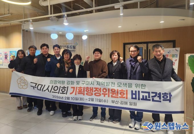 원스텝뉴스 이병희 기자 | 구미시의회 기획행정위원회(위원장 장미경)에서는 2월 10일 화요일부터 11일 수요일까지 1박 2일간 제293회 구미시의회 임시회 폐회 중 부산 및 김해 일원의 선도 시설을 방문하여 청년 지원, 보훈 행정, 유휴 공간 재생 정책 전반을 살펴보았다.